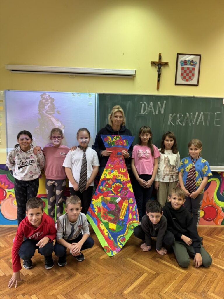 Učenici naše škole obilježili su ovaj dan sa svojim učiteljicama i učiteljima noseći svoje kravate koje su bile svakojakih uzoraka, a također su izrađivali plakate i likovne radove na temu kravate.