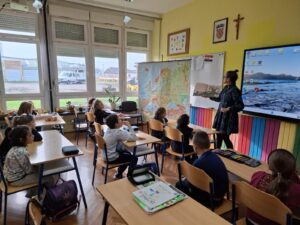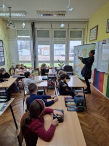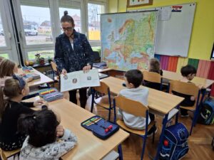 Nedugo nakon što su postali članovima školske knjižnice i upoznali knjižničarku Svjetlanu naši su prvašići „uskočili“ u čitateljski vlak koji će ih provozati diljem Europe! Naravno, riječ je o međunarodnom projektu poticanja čitanja Naša mala knjižnica koji u Hrvatskoj vodi nakladnička kuća Ibis grafika.