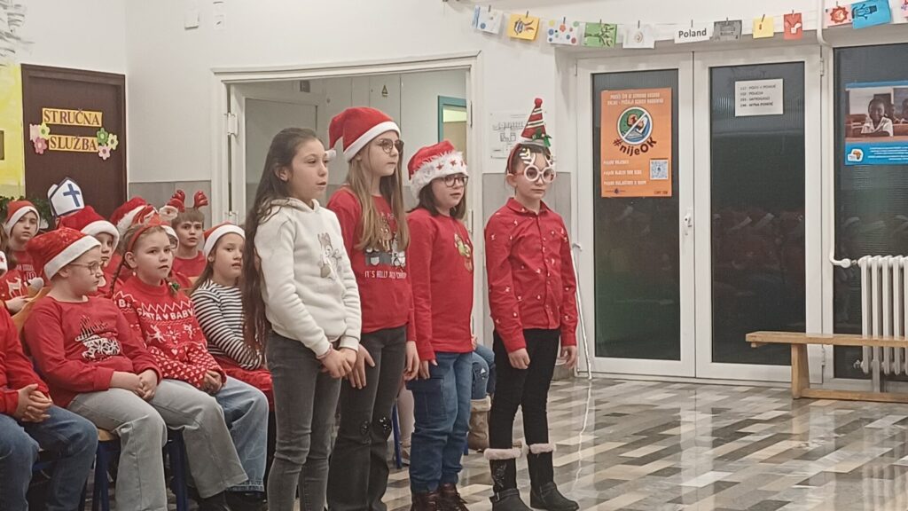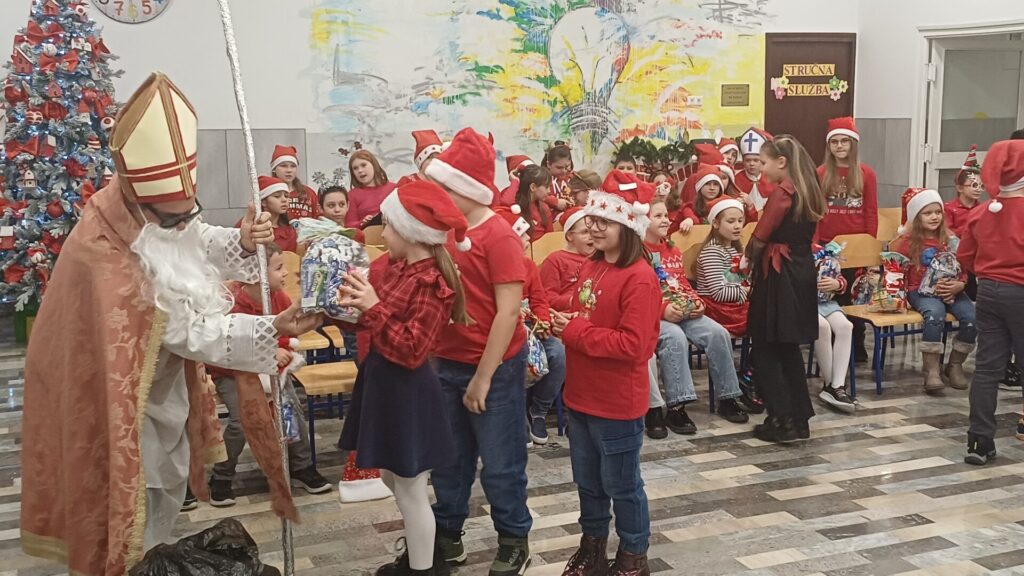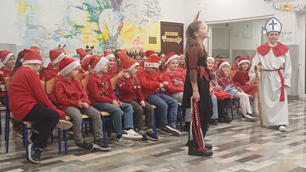Nastupili su učenici od 1. do 4. razreda. Bilo je pjesme, recitacija, plesa i glume. Na kraju je uslijedilo veliko iznenađenje jer nas je posjetio sveti Nikola. Učeničkom veselju nije bilo kraja, a njegov dolazak izmamio je osmijeh na lice svakom djetetu. Sveti Nikola podijelio je darove te svima poželio puno sreće i mira.