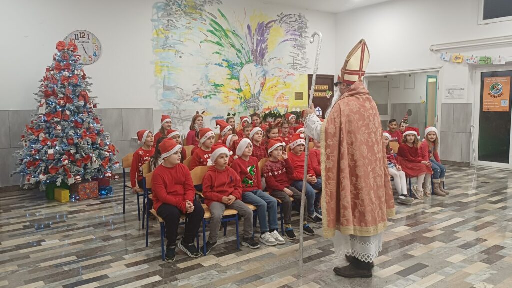 Sveti Nikola je biskup, zaštitnik djece, pomoraca, siromaha, pekara, ribara, putnika i mnogih gradova diljem svijeta. Spomendan mu je 6. prosinca i povodom toga je u petak 5.12.2025. godine u našoj školi održana priredba.