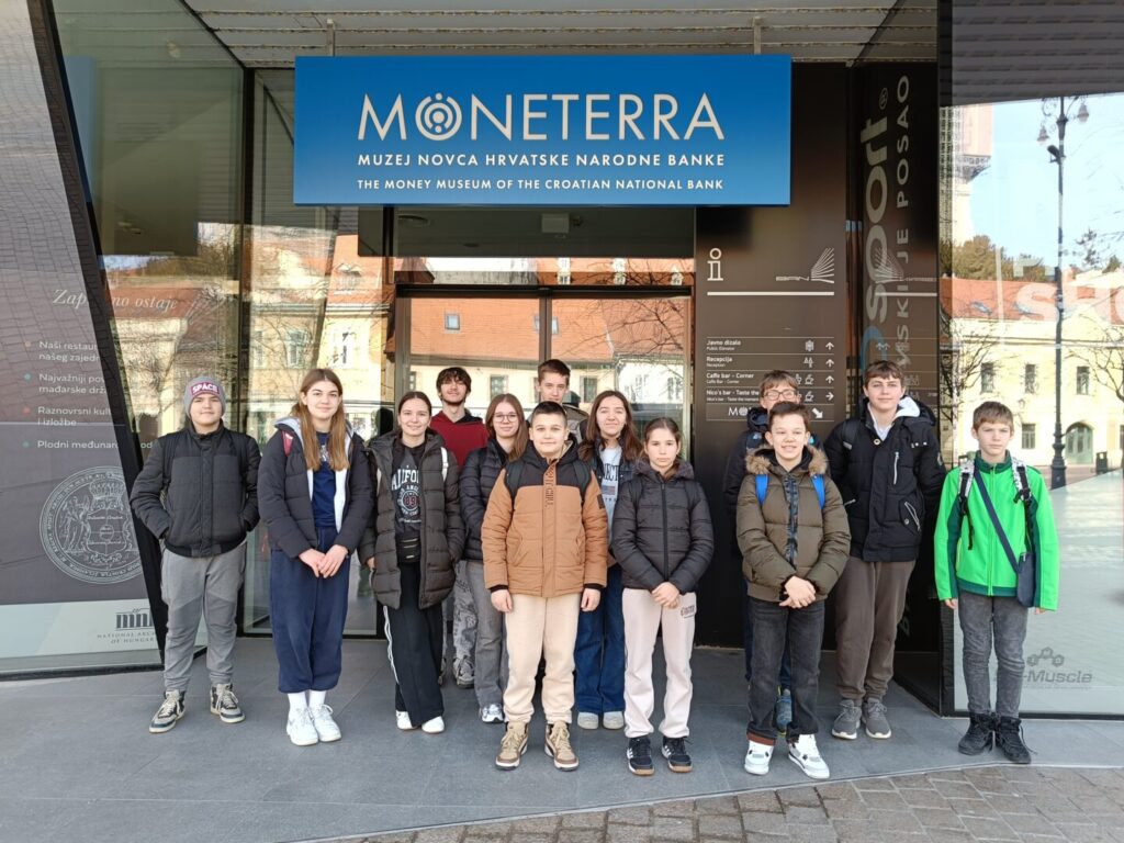 Dana 23.2.2026. 13 učenika od 5. do 8.razreda u pratnji učiteljica Blaženke Mravunac i Nikoline Štedul Kožar te pedagoginje Martine Mihaljević išlo je na terensku nastavu u Zagreb. Učenici su posjetili nekoliko obrazovnih i kulturnih institucija te kroz stručno vodstvo i radionice proširili svoje znanje iz područja jezika, financijske pismenosti i europskih vrijednosti.