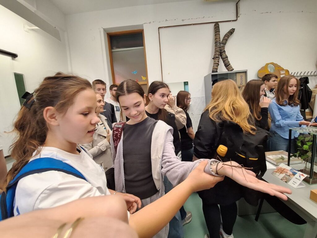 Na Odsjeku za biologiju imali su priliku izbliza vidjeti, a najhrabriji i držati, različite kukce, uključujući bogomoljke i slične vrste.