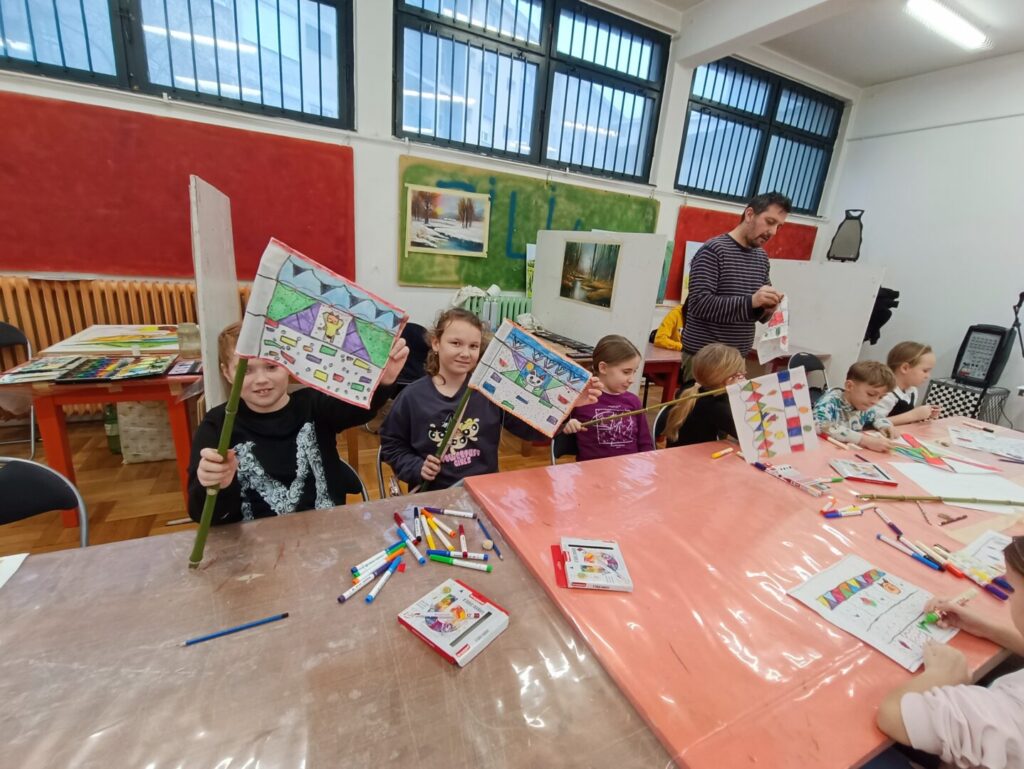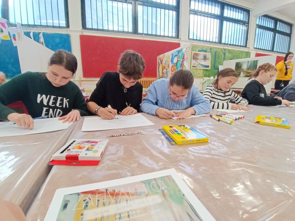 Devet učenika naše škole od 3. do 8. razreda, među kojima su i učenici naše Učeničke zadruge “Ivančice”, sudjelovalo je 22.01.2026. na 52. Zimskoj likovnoj koloniji – “Ziliku 2026.” Učenici su se zabavili na vrlo kreativnoj i zanimljivoj likovnoj radionici pod nazivom “Zastava i grb osobnih boja”, koju je vodio Goran Kujundžić, dr.art. Vrlo zadovoljni svojim likovnim radovima/zastavicama, učenici su ih naposljetku oduševljeno ponijeli kućama.
